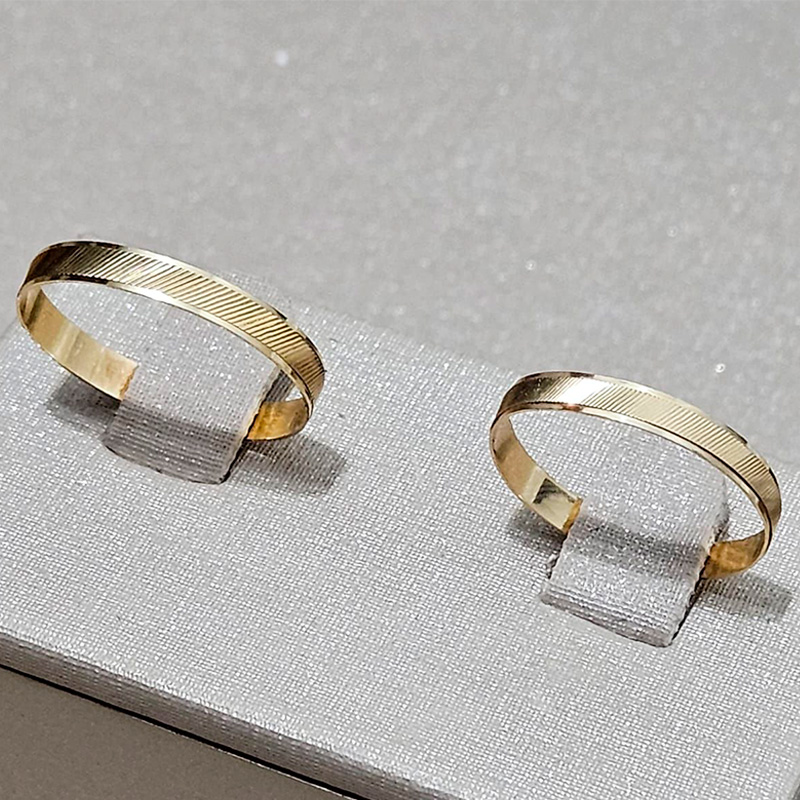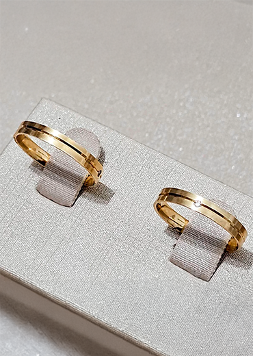 Nossas alianças em ouro 18K ou 10K são sinônimo de qualidade, design sofisticado e garantia. Para que você celebre momentos inesquecíveis com segurança e estilo.